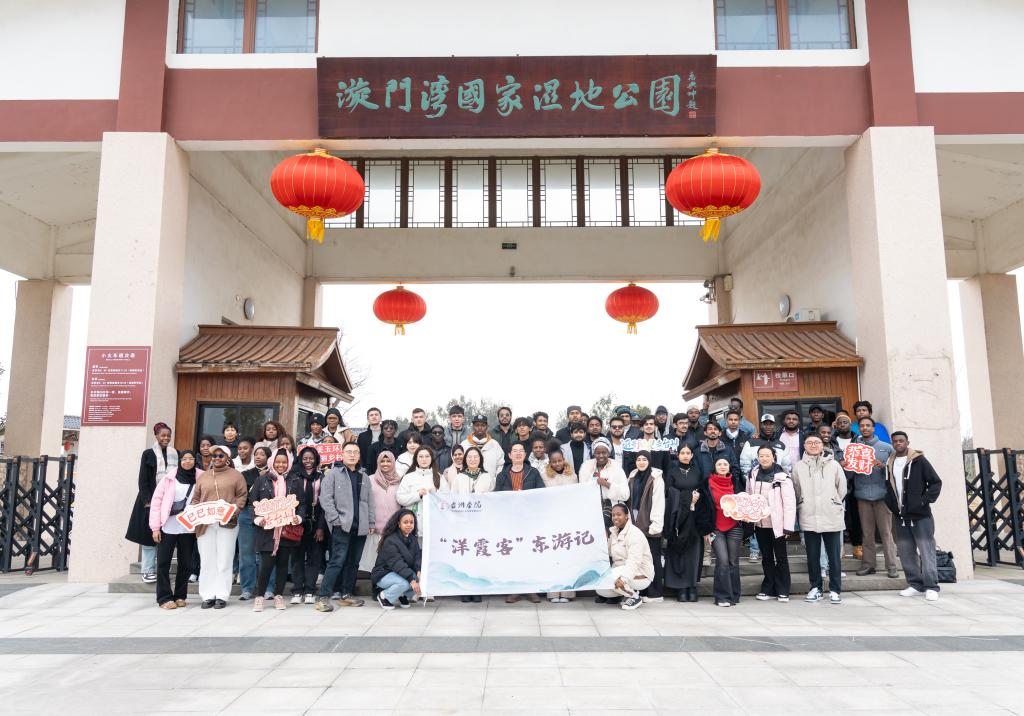 下午,国际学生前往漩门湾国家湿地公园。冬日的湿地,展现出独特的自然之美,碧波荡漾的水面与随风摇曳的芦苇荡相互映衬,构成了一幅美丽的生态画卷。在公园内,学生们参观了标本展示区,各类珍稀动植物标本以及监控区域的动物让他们对这片湿地的生态多样性有了更直观的认识。漫步在公园的栈道上,清新的空气、如画的美景,让他们陶醉其中,真切感受到人与自然和谐共生的美好。