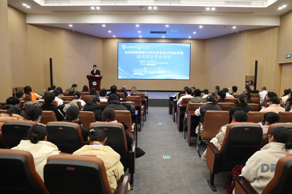 2月15日,台州学院首届大学生医学技术技能竞赛(临床医学专业赛道)在台州市中心医院(台州学院附属医院)隆重举行。本次大赛由台州学院医学院主办、台州市中心医院(台州学院附属医院)承办,台州学院6家附属医院的35位选手同台竞技。台州学院医学部主任陈海啸,台州市中心医院(台州学院附属医院)书记陈保富、院长郑贞苍,台州学院医学院书记林海斌、副院长陈光、梁勇教授等领导出席活动。