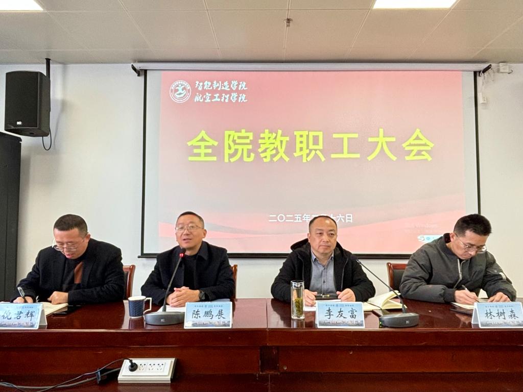 2月16日上午,智能制造学院召开新学期全院教职工大会,部署新学期重点任务。学院党政班子及全院教职工参加,陈鹏展院长主持会议。