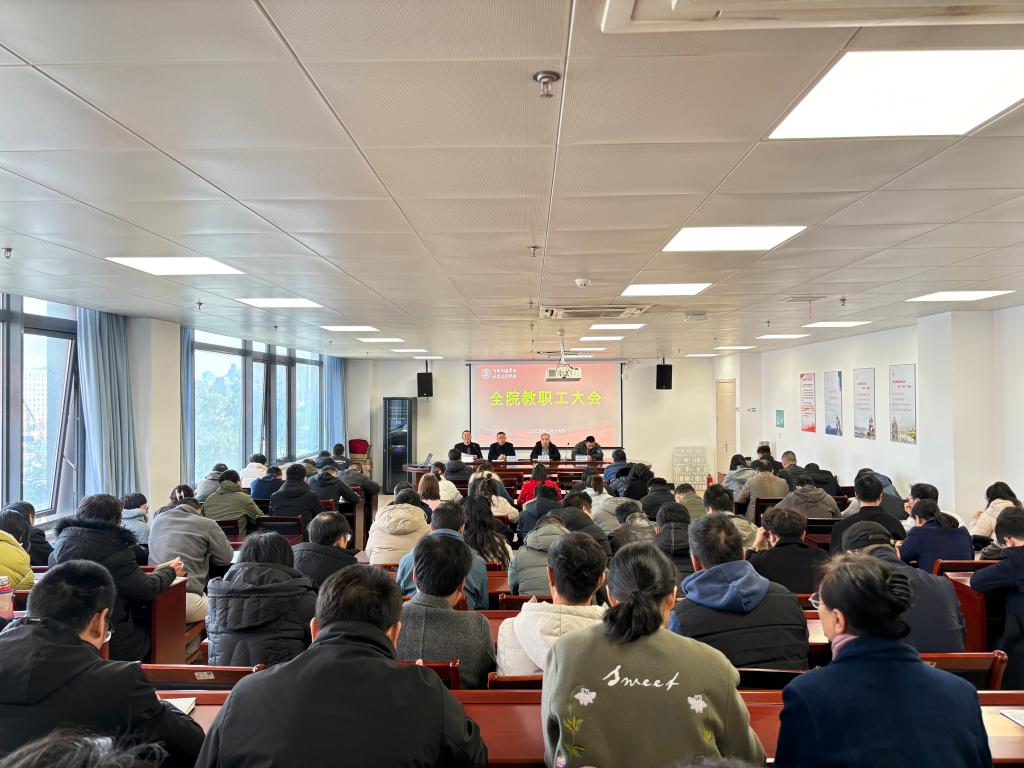 陈鹏展对全院教职工过去一年的辛勤付出及取得的成绩给予了充分肯定,同时从“做好育人工作”“提升学科水平”“深化校地合作”“优化师资队伍建设”“提升管理效能”等五方面重点工作进行安排部署,强调要把握国家政策及行业趋势,努力提升人才培养质量和服务社会能力,为区域经济和社会发展做出贡献。最后,他对国家自然科学基金申报进行了全面动员,通过数据分析与经验交流,鼓励教师们积极申报。