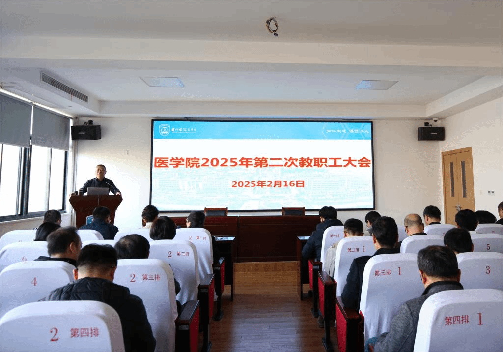 2月16日下午,医学院在A437召开新学期教职工大会。学院党政领导及全体教职工参加,会议由院党委书记林海斌主持。