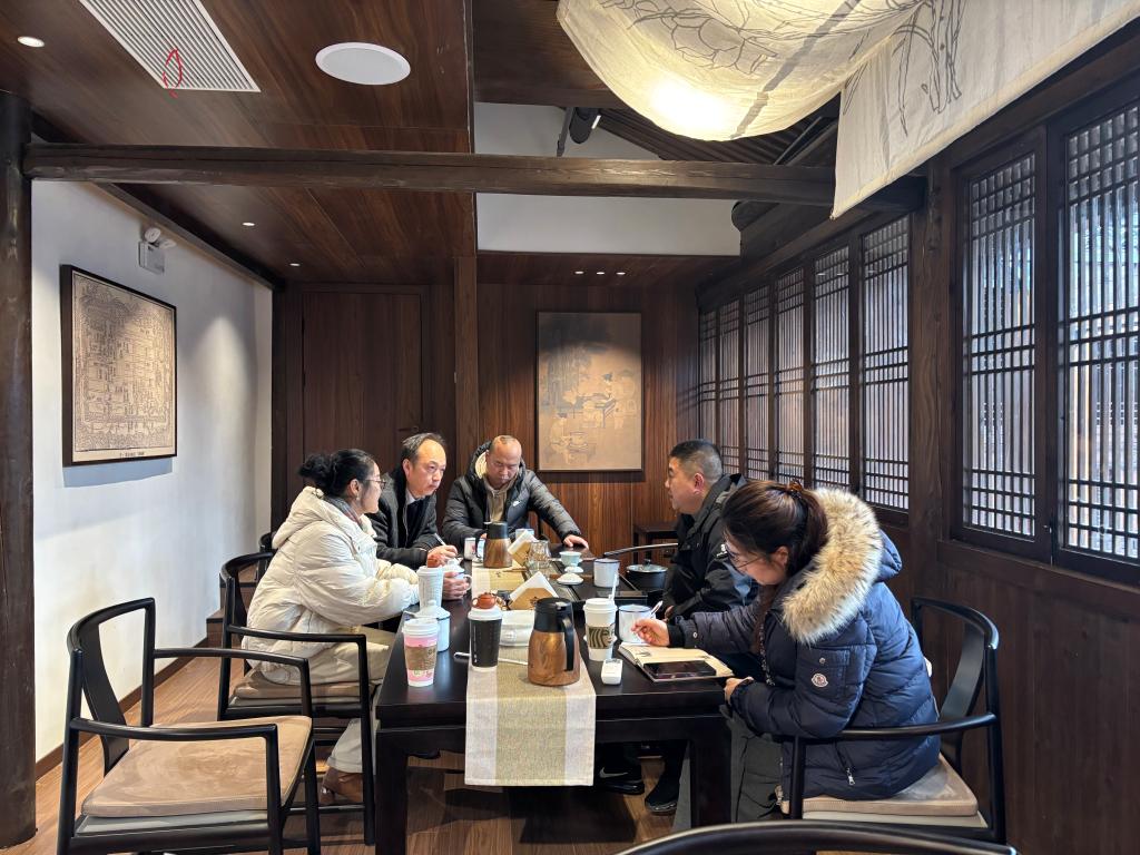2月21日下午,创业学院院长周瑶一行前往临海紫阳街进行交流洽谈。台州府城文化旅游发展有限公司董事长陈健热情接待来访团队。