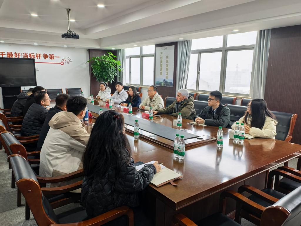 调研首站,学生第一党支部一行与温峤镇政府进行了面对面的座谈交流。会上,双方围绕如何在党建共建的基础上,进一步深化平台共建、技术共享、人才共育等核心议题展开了深入而热烈的讨论。温峤镇党委书记郑亮详细介绍了当地产业发展的总体情况,并表达了与高校合作、共同推进人才高地建设和科技创新的强烈愿望。吴建波代表学院表达了通过党建共建进一步促进产学研深度融合的决心和信心。双方一致认为,通过党建引领,可以更有效地整合资源,实现优势互补,共同推动教育、科技、人才一体化发展。