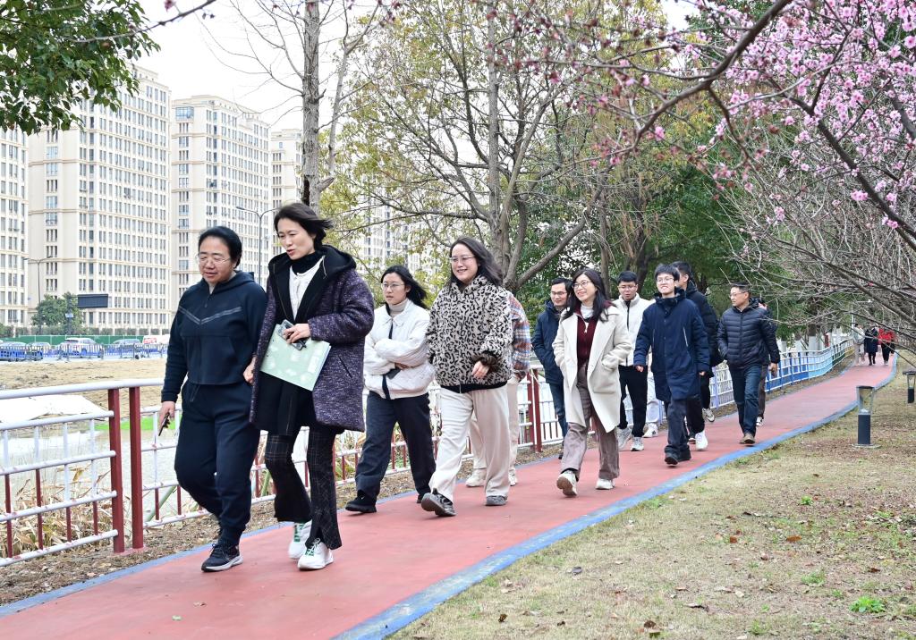 当天下午,春寒料峭,但老师们热情不减,大家三五结伴而行,步履轻盈,漫步在春意渐浓的校园里,欢声笑语不断。平日里熟悉的教学楼、图书馆、心湖等场所在此刻仿佛变成了独特的风景画,为这场健步走增添了几分愉悦的氛围。老师们彼此交流,分享着生活与工作中的点滴,有的老师不禁感慨:“平日里忙于备课、科研,难得有机会漫步校园,今天既锻炼了身体,又欣赏了玉兰初绽的春景,特别惬意!”
