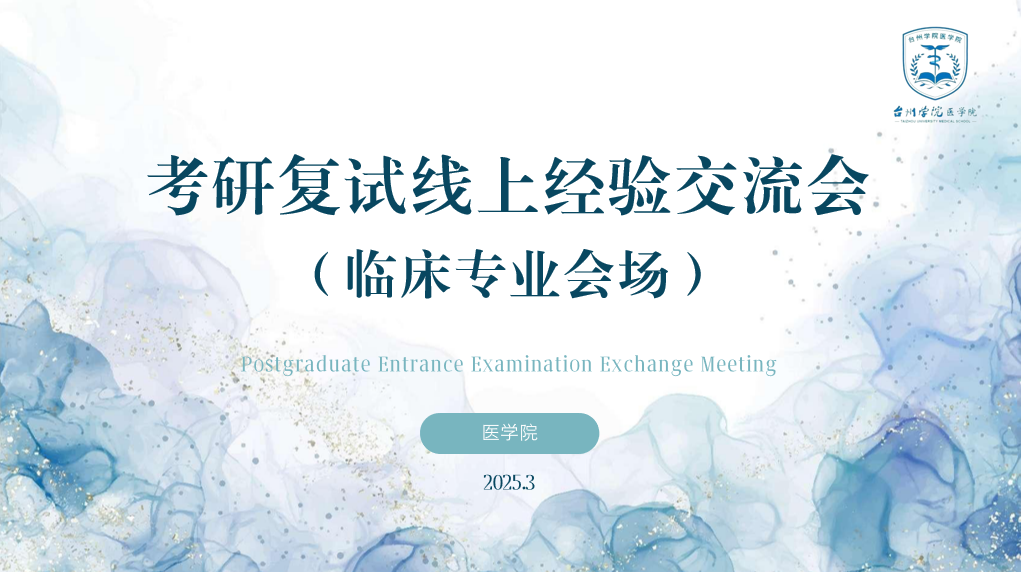 为精准回应考研学子复试备考需求,提升备考实效,3月7日至8日,医学院举办“医路研途·云端引航”2025届考研复试线上经验交流会,特邀学院党委副书记周敏、康复系专任教师童玥及21名成功考取浙江大学、复旦大学等知名高校的学长学姐云端传授复试备考经验,搭建起朋辈互助立体化指导平台,采用“双会场+双时段”模式,系统覆盖复试全流程,吸引400余名学子线上观摩“取经”。