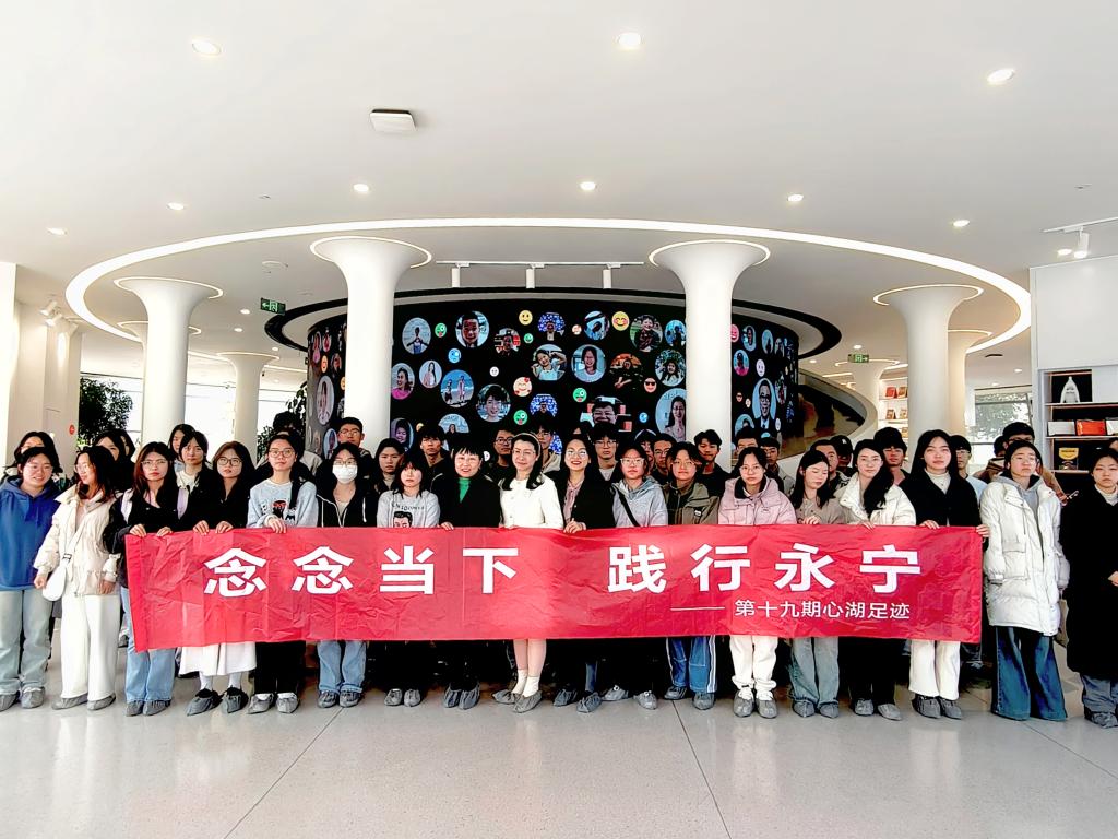 3月20日下午,心湖书院组织师生共赴黄岩开展第19期心湖足迹活动,探秘永宁幸福科学馆,解码积极心理学。此次活动也是心湖课程《正念:送给自己滋养生命的礼物》走出课堂,结合实践,创新教学的有效尝试。活动由医学院教授、心湖课程教师黄芳老师带队,心湖书院副院长陶媛、辅导员李凌及40余位心湖学子参加。
