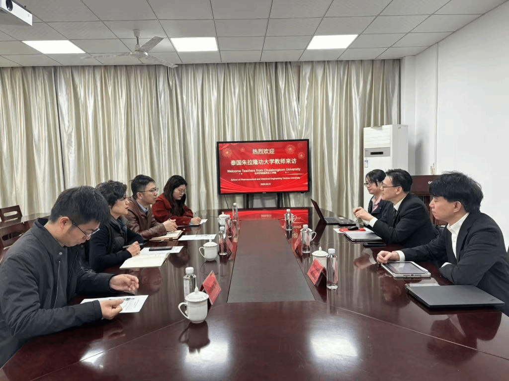 3月21日,泰国朱拉隆功大学制药科学学院分子探针成像研究网络项目首席研究员Prof.Pornchai Rojsitthisak一行到医药化工学院访问交流。学院党委书记徐元红、副院长马达、何福生教授、禹华博士热情接待了代表团并进行友好会谈。宾主双方开展了学生交流、教师交流、科学研究、中泰天然药物化学联合实验室建设等各项合作事宜,并达成了友好共识。
