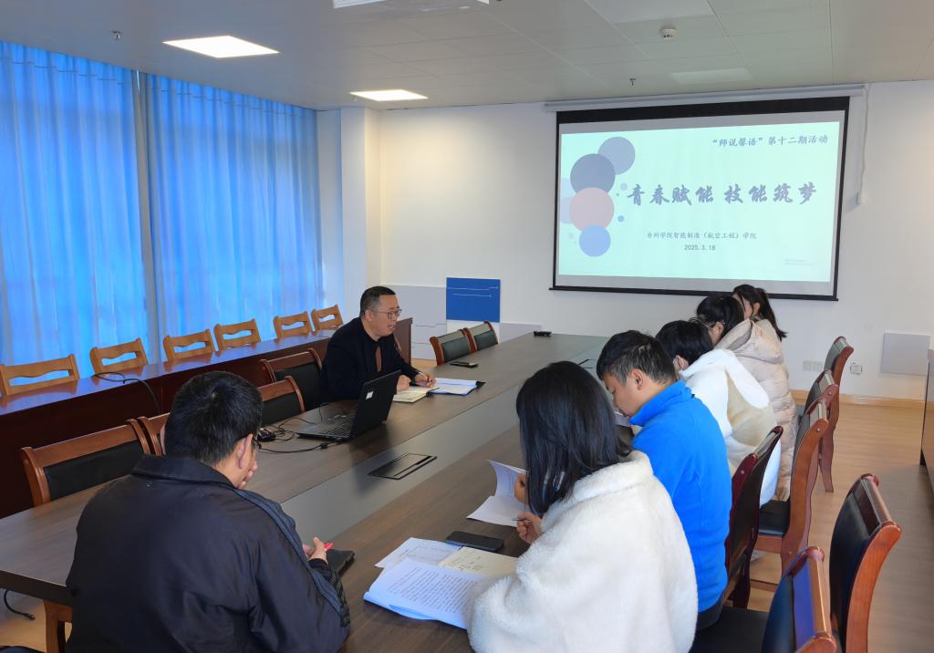 近日,智能制造(航空工程)学院于S501会议室举行“师说馨语”第十二期活动,活动以“青春赋能,技能筑梦”为主题进行交流。智能制造学院副院长倪君辉,智能制造学院培训导师和班主任、各专业辅导员参加本次活动。