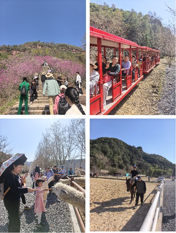 下午,大家来到了位于天台县雷峰乡的朱莉农场。这是一个现代化生态循环农场,以创新农业模式和带动当地经济发展而闻名。农场周围溪水潺潺,农场里面春意盎然。教职工及家属们坐上小火车来到了樱花林,亲自参与了骑马、射箭等趣味活动,感受了乡村生活的乐趣和乡村经济社会发展可喜变化。