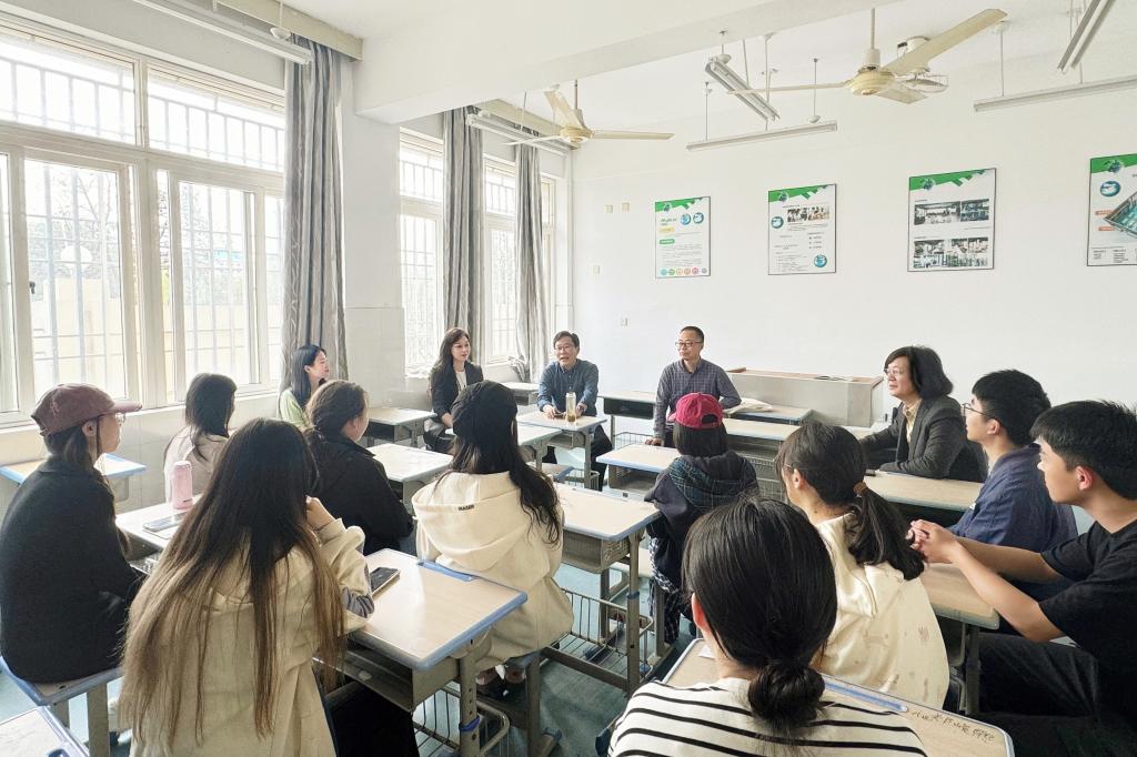 座谈会上,温岭三中校长陈海亮、副校长林永光及相关校领导对学院领导的来访表示热烈欢迎,并肯定了我院实习生的实习质量和表现。姜向阳代表学院感谢温岭三中对我院人才培养工作的全力支持、对实习生的关心指导,并结合自身经历对实习生们提出建议:一是要以德立身、以行育人,讲台是大家未来展示个人教学水平的舞台,更是全方位展示个人能力的平台;二是要提升自我、拓宽机遇,通过攻读研究生以不断提高核心竞争力,在就业市场获得更多选择;三是要调整自身、适应环境,师范实习不仅是教学能力的试炼场,更是独立生活的实践课,要通过合理规划饮食、优化住宿环境来保障自身身心健康,照顾好自己,才能更好地守护学生。
