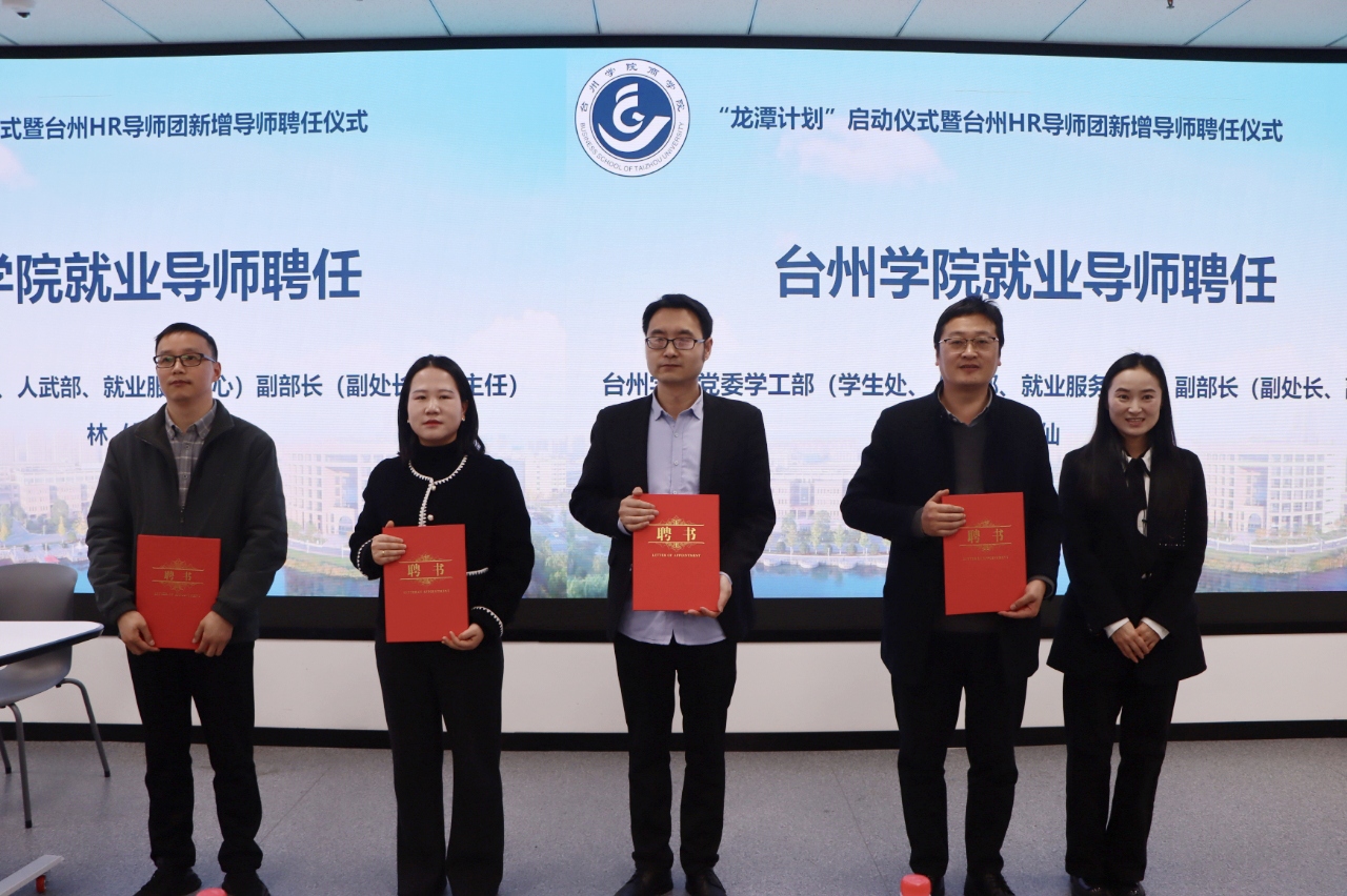 为深化产教融合,提升学生职业素养与就业竞争力,商学院于3月29日在1-213教室举办“龙潭计划”启动仪式暨台州HR导师团新增导师聘任仪式。商学院党委书记马斌、学工部副部长林仙、十位知名企业高管、合作单位代表及商学院师生代表共同参与活动。活动由商学院党委副书记陈斌岚主持。