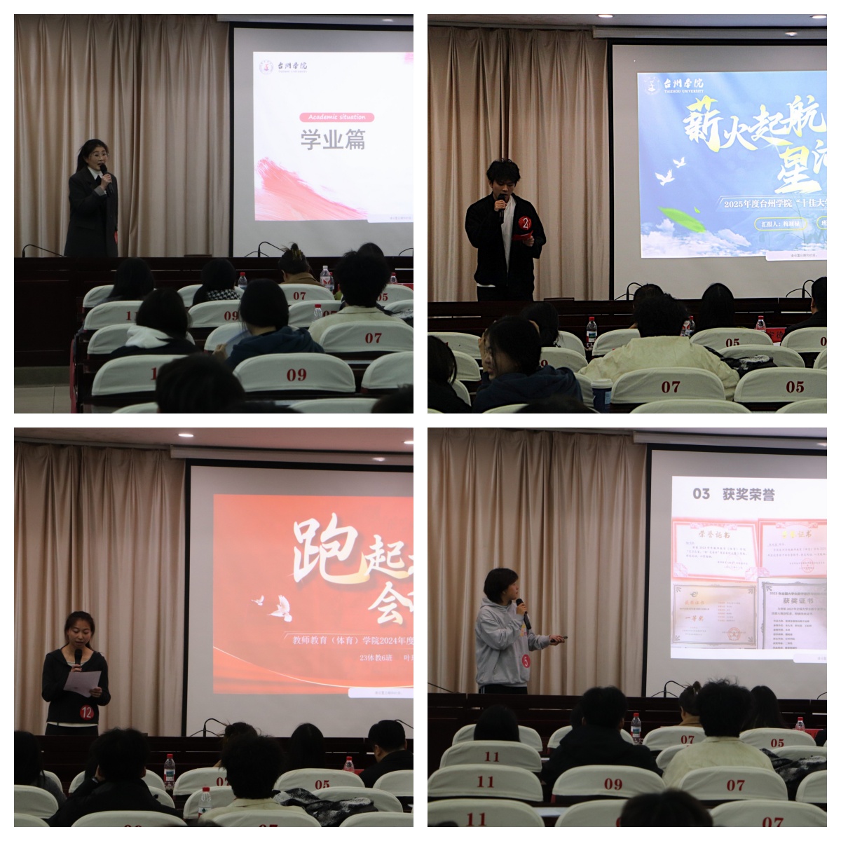 为展现教院学子的精神风貌,有效发挥优秀学生的榜样引领作用,4月1日晚,教师教育(体育)学院“十佳大学生”公选会在图书馆6楼学术报告厅隆重举行。院党委副书记吴磊,副院长任翔宇、覃宇德,辅导员徐薇、屈佳妮、梁鈨和朱浩楠担任评委,百余名学生代表到场观摩,共同见证优秀学子的风采角逐。