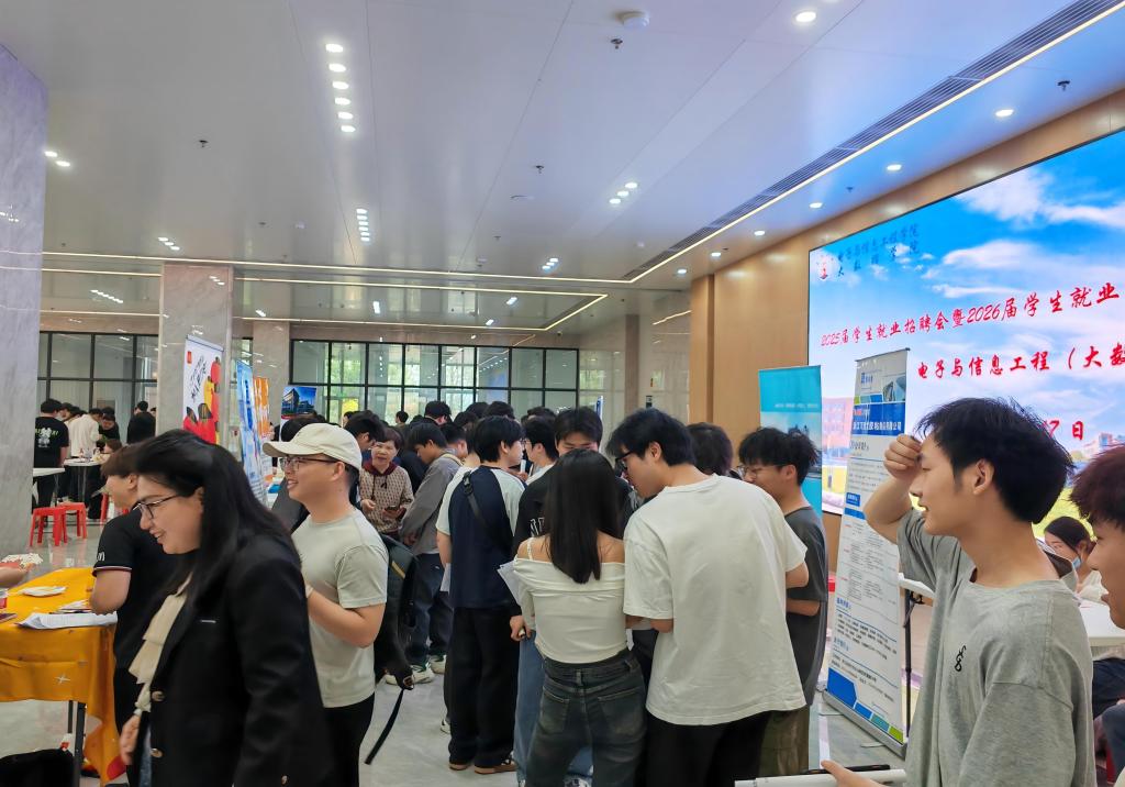 为进一步做好就业(实习)服务工作,搭建用人单位和学生的交流平台,4月17日,电子与信息工程(大数据)学院在椒江校区综合科技楼大厅组织2025届毕业生就业招聘会暨2026届学生实习双选会。本次双选会邀请40余家企业到会招聘,累计收到简历近700份。校学生工作部部长杨启富到会指导,学院领导班子、各系主任、各年级辅导员、600余名学生参加。