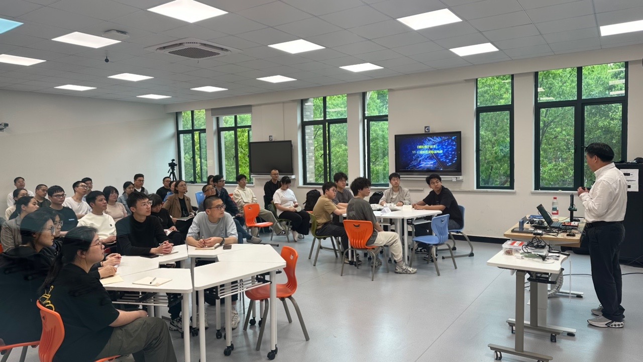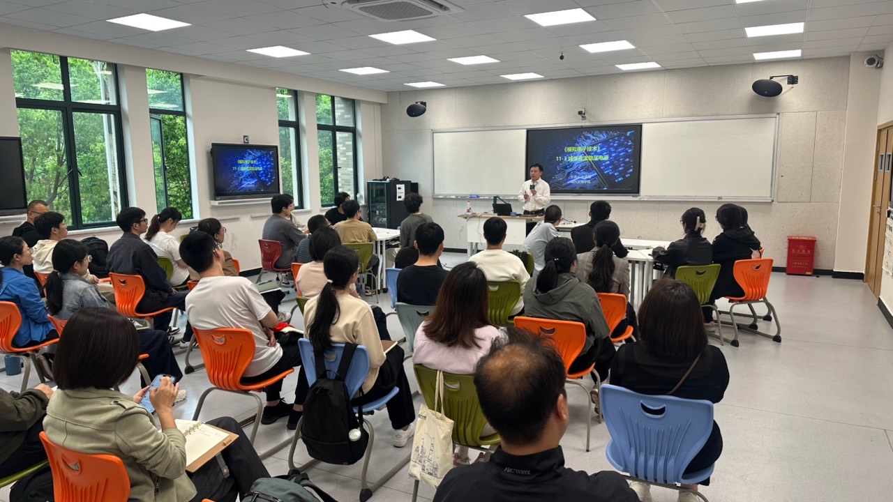 赵伟强教授基于《模拟电子电路》课程的“直流稳压电源”章节,重点通过“便携式实验平台的硬件电路测试运用”的内容,使用DeepSeek辅助课堂教学,运用智慧教学工具开展实时互动,为我们开展了一场精彩的示范课教学。课堂上,老师与学生积极互动,教学氛围热烈,教学效果良好,智慧教室功能得到充分展示。课后,赵伟强教授与观摩教师进行了问答交流,参加观摩的教师表示受益良多,对智慧教学有了更深刻的理解,将会更好地在以后的教学活动中借助智慧教室功能,加强师生互动,提升教学能力,改善教学效果。