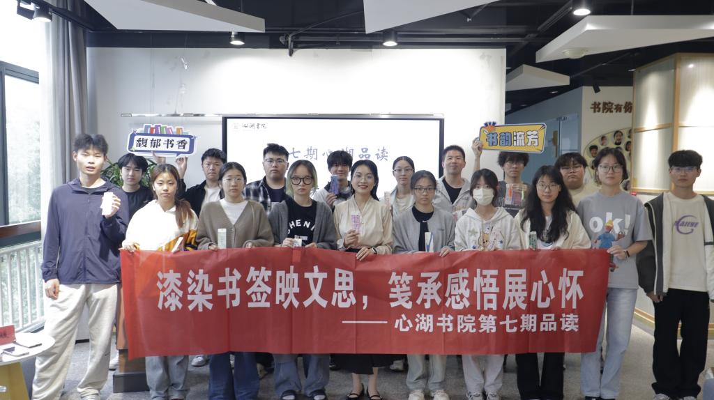 4月24日下午,心湖书院以“漆染书签映文思,笺承感悟展心怀”为主题举办第七期“心湖品读”活动。书院学生马振岩担任主持,副院长陶媛与20名学子参与交流,通过“手作-书写-对话”三阶段沉浸式体验,在慢工细作中唤醒深度思考与文化共鸣。