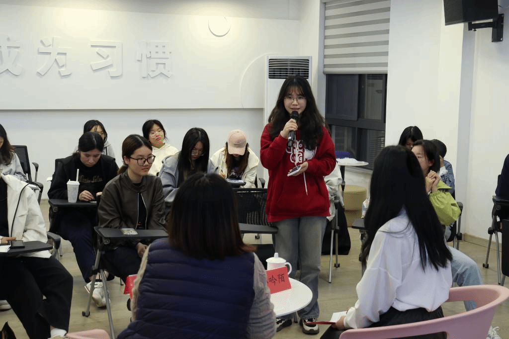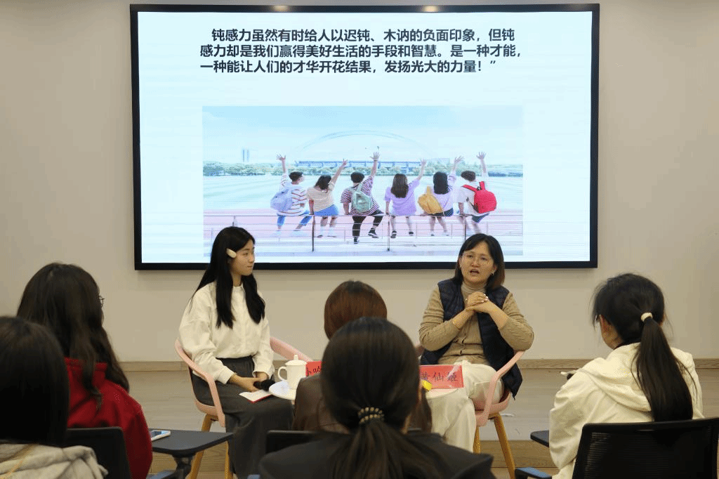 在互动环节,现场气氛热烈,同学们积极分享自己的心得收获,并结合自身成长经历,就培养钝感力的实际问题展开讨论。黄仙姬认真倾听每位同学的发言,并给予专业细致的解答。现场思想碰撞不断,智慧火花频现。