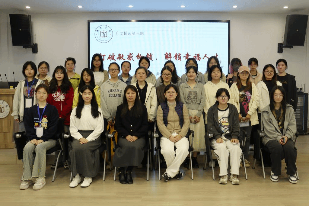 4月27日晚,广文书院在多功能厅成功举办了以“钝感力:打破敏感枷锁,解锁幸福人生”为主题的广文悦读活动,人文学院专任老师,书院导师黄仙姬应邀出席并担任主讲嘉宾。