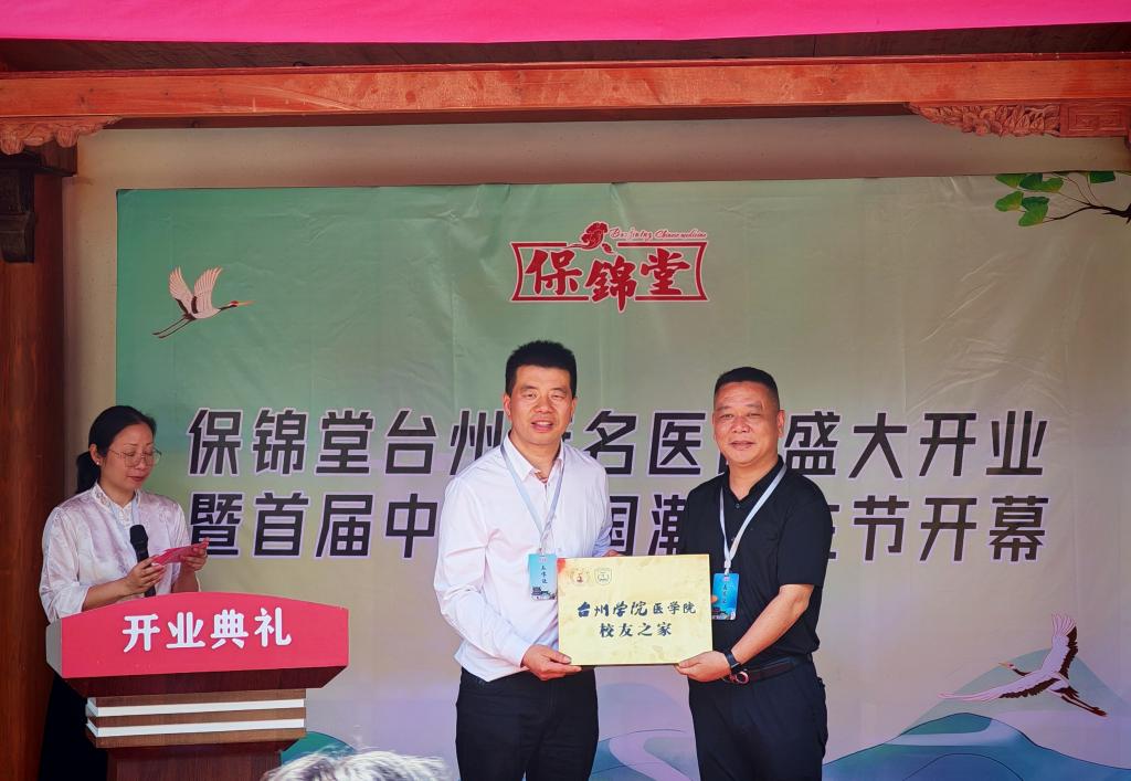 5月1日上午,台州学院医学院校友之家授牌仪式暨保锦堂台州府名医馆开业活动在葭沚老街举行。台州学院办公室副主任徐敏、台州学院医学院党委书记林海斌、台州市中医院党委书记徐雄平、台州学院医学院原院长梁勇、台州卫生学校原校长柯干、黄岩中医院原院长牟重临、台州市卫健委一级主任科员江志勇(84级校友)、浙江保锦堂医疗有限公司董事长张利(93级校友)等出席活动,浙江中医药大学、成都中医药大学校友会代表及各界嘉宾共同见证这一重要时刻。