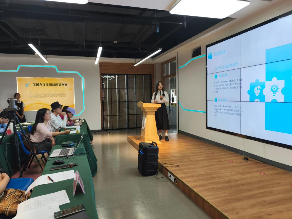 现场气氛热烈,参赛项目类型丰富多样,涵盖了科技创新、文化创意、社会服务等多个领域,充分展现了我校大一学生广阔的创新视野和扎实的实践能力。各参赛团队通过精心准备的PPT展示和条理清晰的答辩,向评委和观众详细阐述了项目的创新点、市场前景以及发展规划。由校创业导师组成的评审团认真聆听、严格评审,从项目的创新性、实用性、团队执行力以及市场潜力等多个维度进行综合考量。