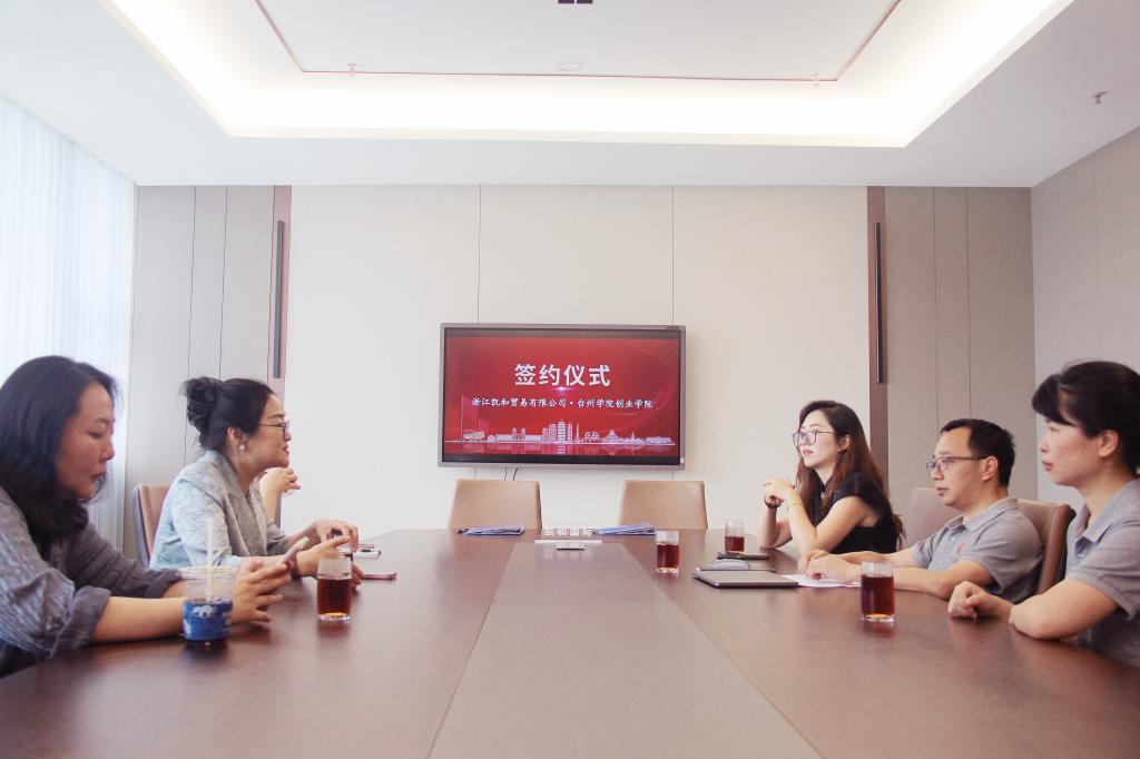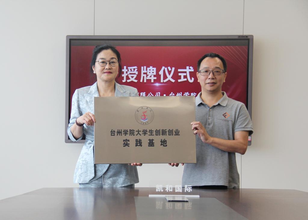 周瑶为浙江凯和贸易有限公司授予“台州学院大学生创新创业实践基地”牌匾,标志着双方合作迈入新阶段。