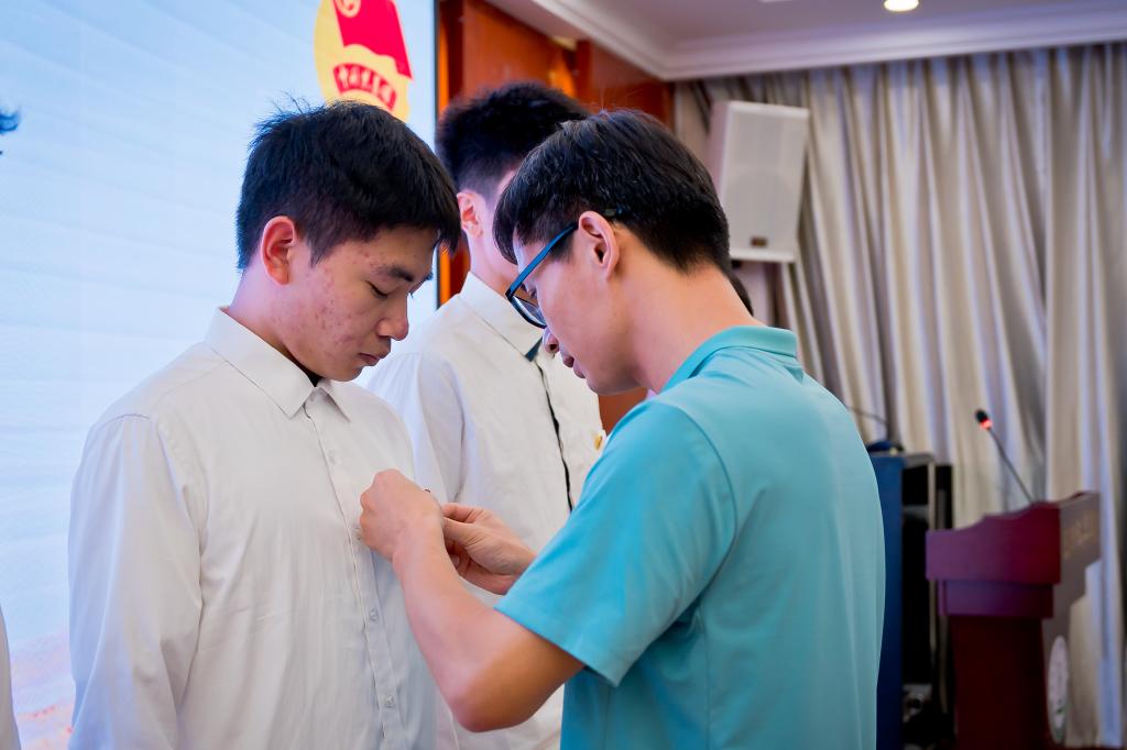 在庄严的国歌声中,入团仪式正式拉开序幕。吴政浩宣读新团员名单,并对学院33名新团员表示祝贺。随后,翁添富为新团员代表佩戴团徽,吴政浩带领全体新团员作入团宣誓,新团员代表颜晓冰与优秀团员代表滕佳园先后发言,表示将充分发挥团员先锋模范作用,在学习、生活和工作中传承优良作风,以实际行动诠释青春价值。