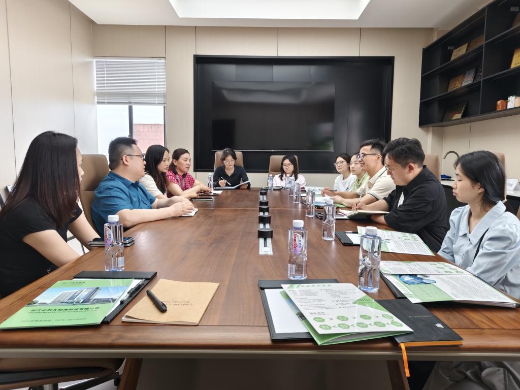 浙江必利夫检测科技有限公司检测中心主任高循洲、综合办公室主任王君芳对学院一行表示热烈欢迎。座谈会上,高循洲系统介绍了企业发展历程,展示了公司在环境监测、食品安全检测、职业卫生评价等领域的核心技术优势与服务网络布局。翁添富从学科建设、人才培养、科研创新等方面介绍了学院发展概况,并围绕毕业生专业实践能力、跨学科创新思维、职业伦理素养等关键能力展开深入研讨。互动环节,参会学生现场递交简历,并针对岗位技能要求、职业发展通道、行业前沿动态等问题与企业代表展开交流。