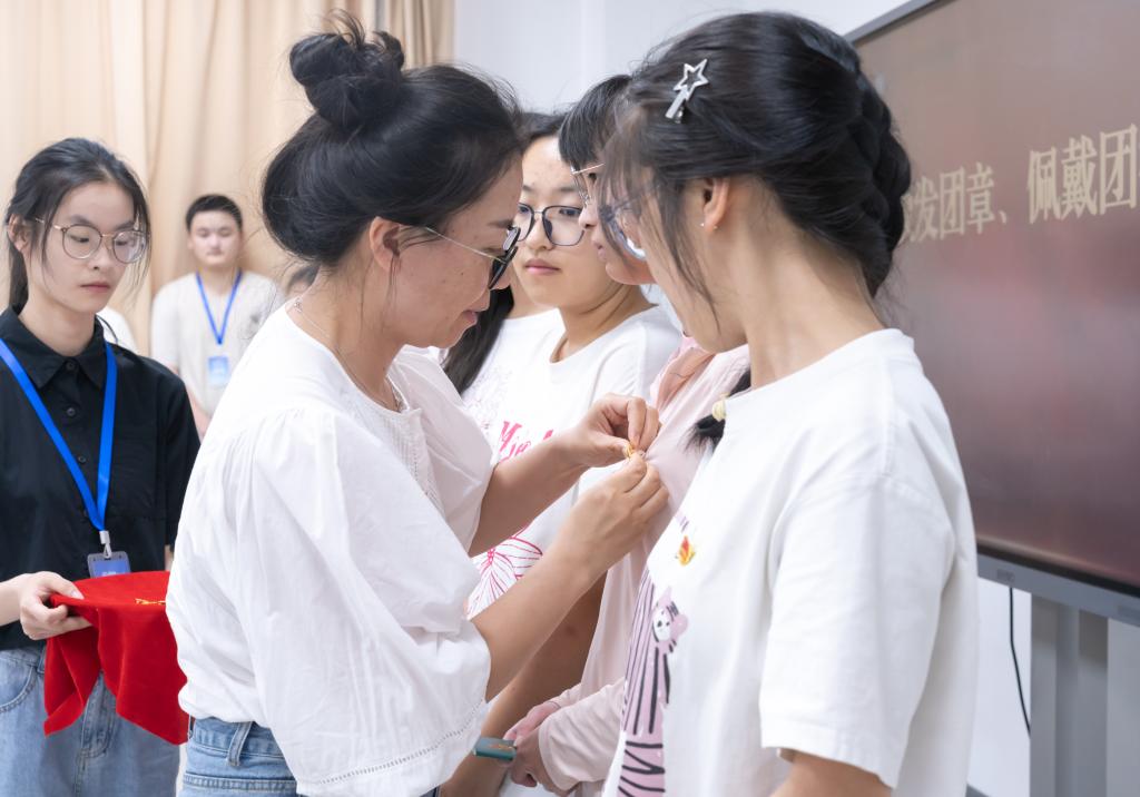 为新团员颁发团章、佩戴团徽