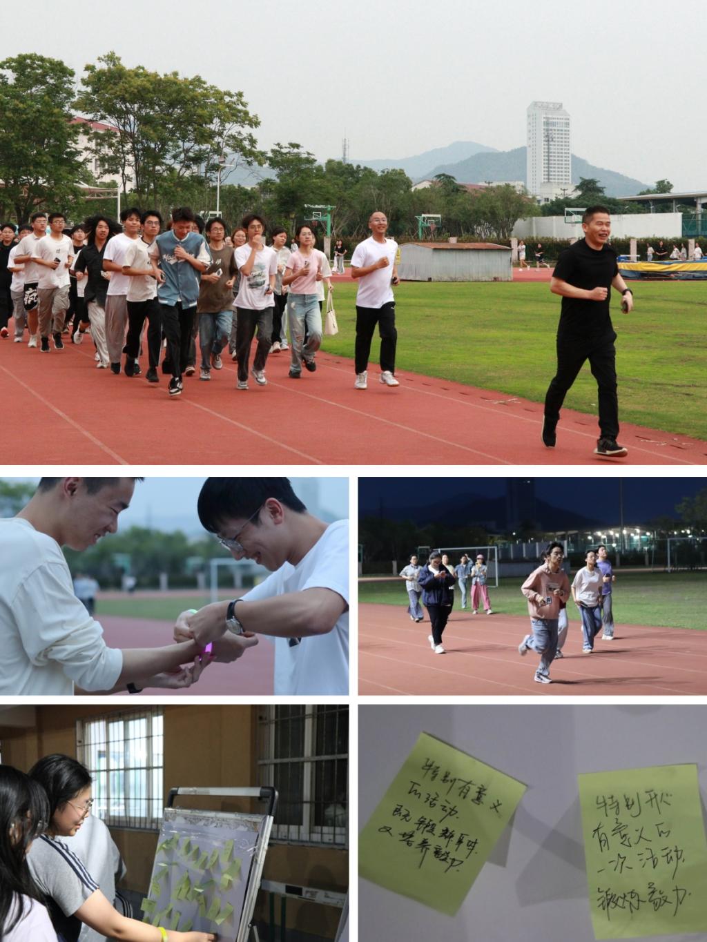 学院将心理健康与体育运动深度融合——3月30日“自信启航·青春飞扬”第三届心理趣味运动会通过团队协作项目提升学生自信与凝聚力;4月16日、5月25日两期“跑出心节奏·健康新生活”荧光夜跑活动更以闪耀的夜跑队伍点燃校园,引导学生在运动中舒缓情绪,培养健康生活方式。