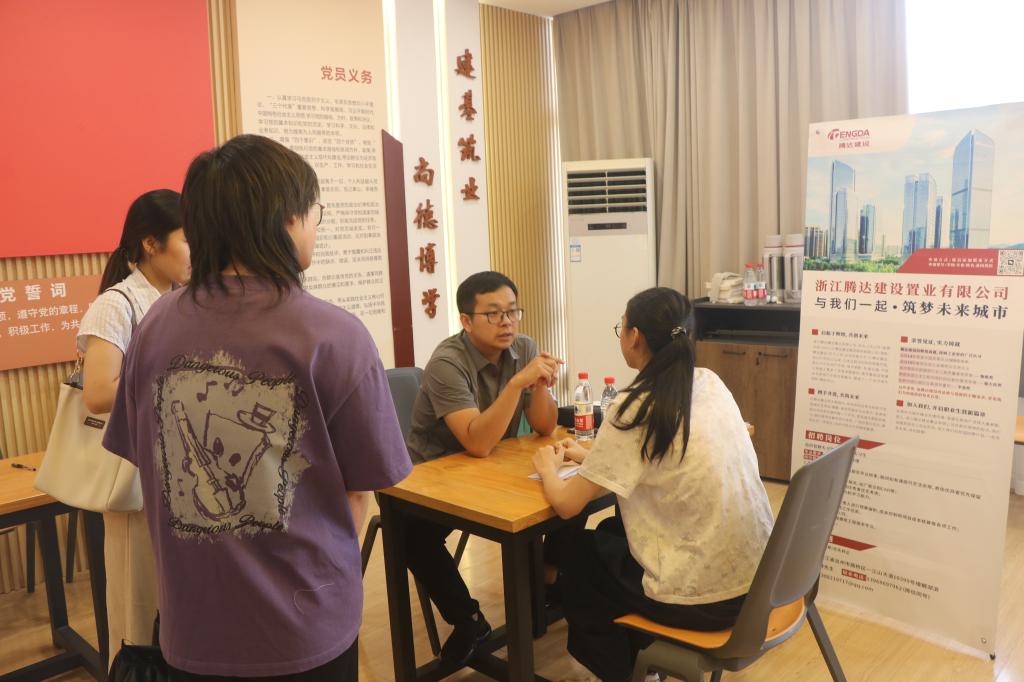 6月5日下午,建筑工程学院2025年就业与实习“双选会”在学院隆重举行。本次双选会汇聚了浙江腾达建设置业有限公司、台州学院温岭研究院、中冠工程管理咨询有限公司、浙江国腾建设有限公司等多家知名企业,为毕业生和实习生提供了丰富的岗位选择,搭建了校企双向对接的高效平台。