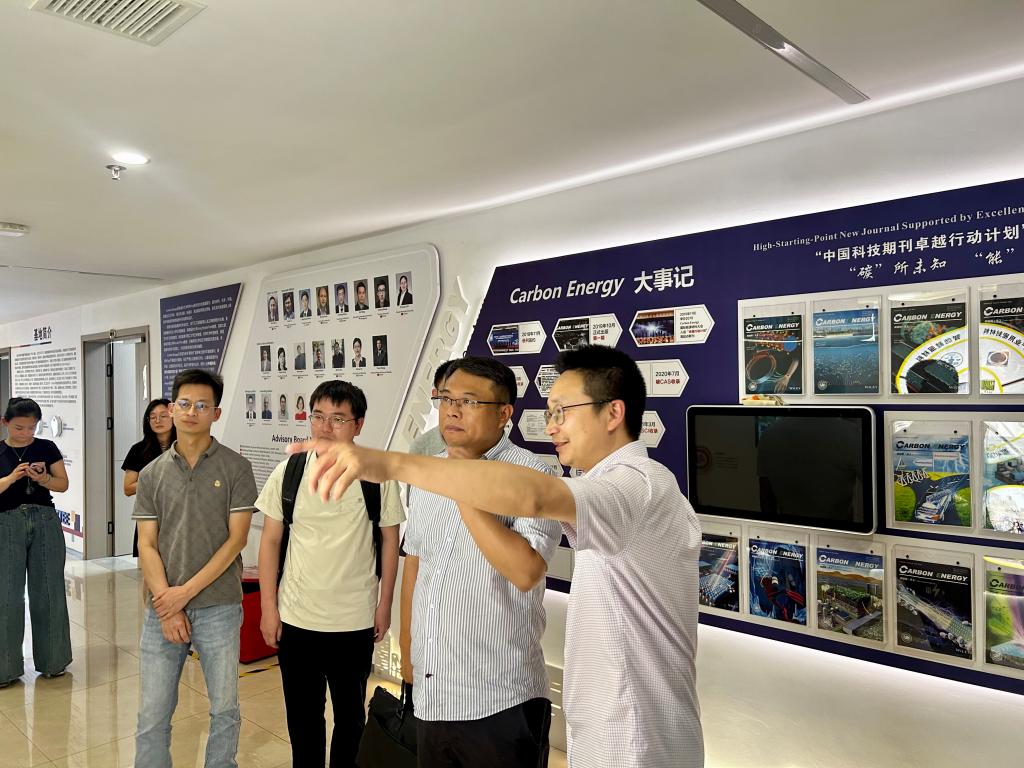 温州大学化学与材料工程学院党委书记邹超和副院长金辉乐等人热情接待了黄国波教授访问团。首先,在金辉乐副院长的陪同下,访问团参观了解了温州大学化学与材料工程学院和温州大学碳+新能源产教融合基地的发展历程和建设管理模式,黄国波院长表示希望能够以此次访问为契机,与温州大学化学与材料工程学院在学科建设、研究生培养以及科学研究等方面开展务实合作。