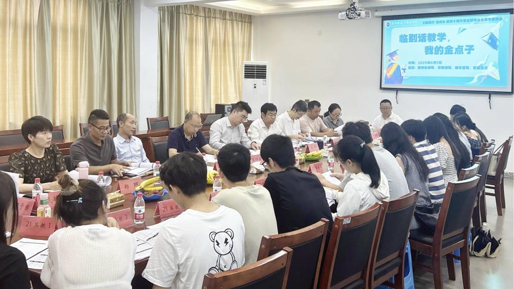 为提高教学工作质量,促进学院持续高质量发展,外国语学院于6月5日下午在4102会议室举办“临别话教学,我的金点子”为主题的第四十期茶话会暨毕业生教学座谈会。学校教务处副处长黄江峰、学校督导吴仲敏、学院领导班子、各系办主任、学院督导及2024级毕业生代表参加,外国语学院党委副书记鲁建波、副院长崔瑞国主持。