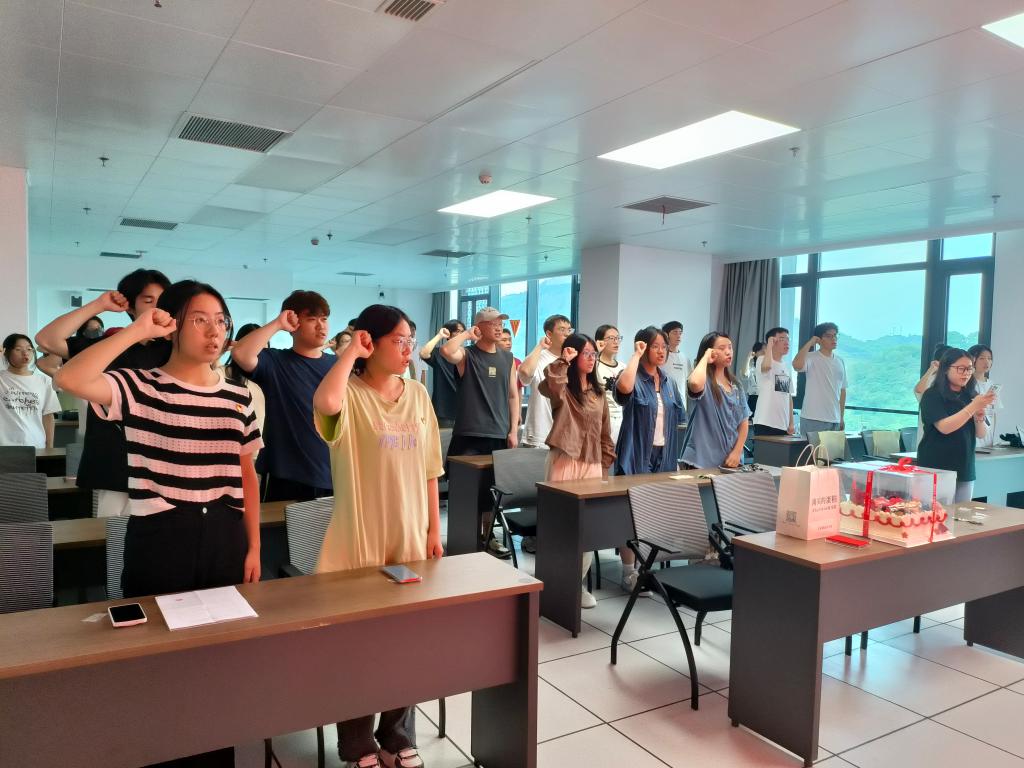 重温誓词,铭记初心。在庄严的党旗前,全体毕业生党员高举右拳,重温入党誓词。铿锵有力的誓言响彻会场,党员同志们目光坚定,深刻体悟初心使命,筑牢对党忠诚的政治品格。
