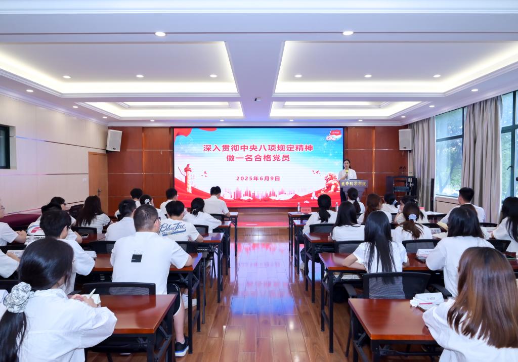 活动最后,郑晓莉为毕业生党员讲授离校前的最后一堂党课,结合深入贯彻中央八项规定精神学习教育,引导广大毕业生做一名合格党员。她带领学生党员再次重温中央八项规定及其实施细则精神,并结合典型警示案例,详细阐述违反中央八项规定精神的主要表现,引导学生党员深切领悟腐败问题常常肇始于小事小节的疏忽失守,将“眼中所见的反面教训”切实内化为“心底长存的敬畏戒惧”,持续强化遵规守纪的思想自觉与行动自觉。
