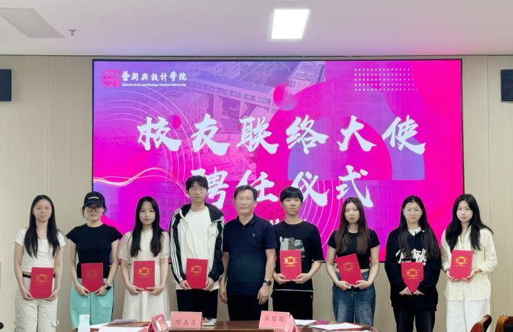 6月12日,艺术与设计学院举办2025届校友联络大使聘任仪式。学院党委书记姜向阳、副院长赵振华、党委副书记王洁茹、各专业系主任以及学工办、教务办老师出席,仪式由党委副书记王洁茹主持。