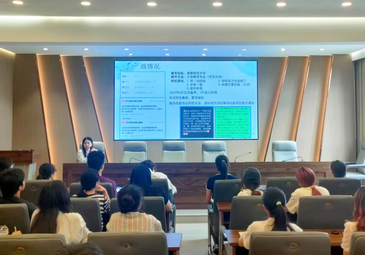 讲座伊始,张丫妮随即结合自身“一战”失利与“二战”成功的深刻经历展开分享。她开宗明义,分析了当前考研形势的严峻性,语重心长地强调了“首战告捷”的重要性,指出“二战”将承受更大的心理压力和结果的不确定性,鼓励大家全力以赴争取“一战成硕”。