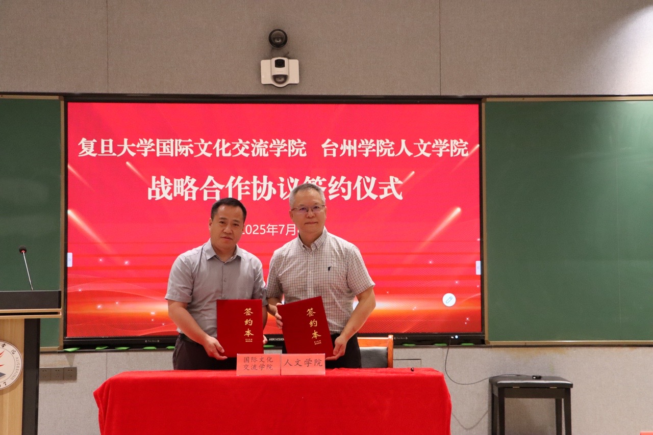 7月8日上午,复旦大学国际文化交流学院与台州学院人文学院战略合作协议签约仪式在临海校区A6阶梯教室隆重举行。本次签约标志着两院将在学术研究、文化传承、师生交流等领域展开深度合作,共同培养兼具家国情怀与国际视野的复合型人才,为促进文明交流互鉴注入新动能。仪式由台州学院人文学院屈燕飞老师主持。