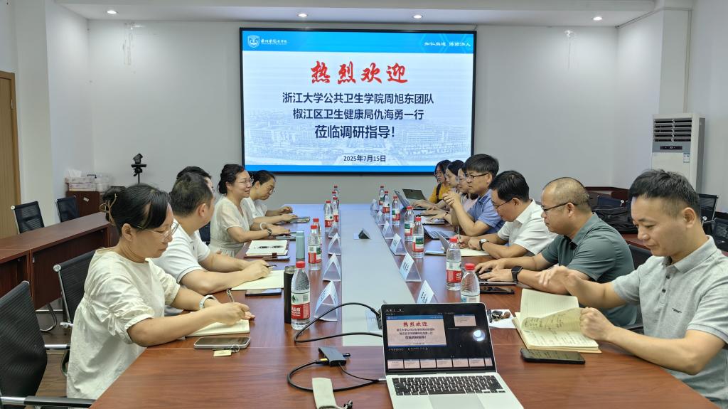 7月15日上午,椒江区卫生健康局副局长仇海勇一行会同浙江大学公共卫生学院周旭东教授团队莅临医学院,围绕科研合作、人才培养及医疗健康领域共赢发展开展深度调研交流。医学院党委副书记周敏、副院长胡琼莹、副院长刘晓红出席,相关领域专任教师白石、陈王洋、王祥虎参加座谈会。