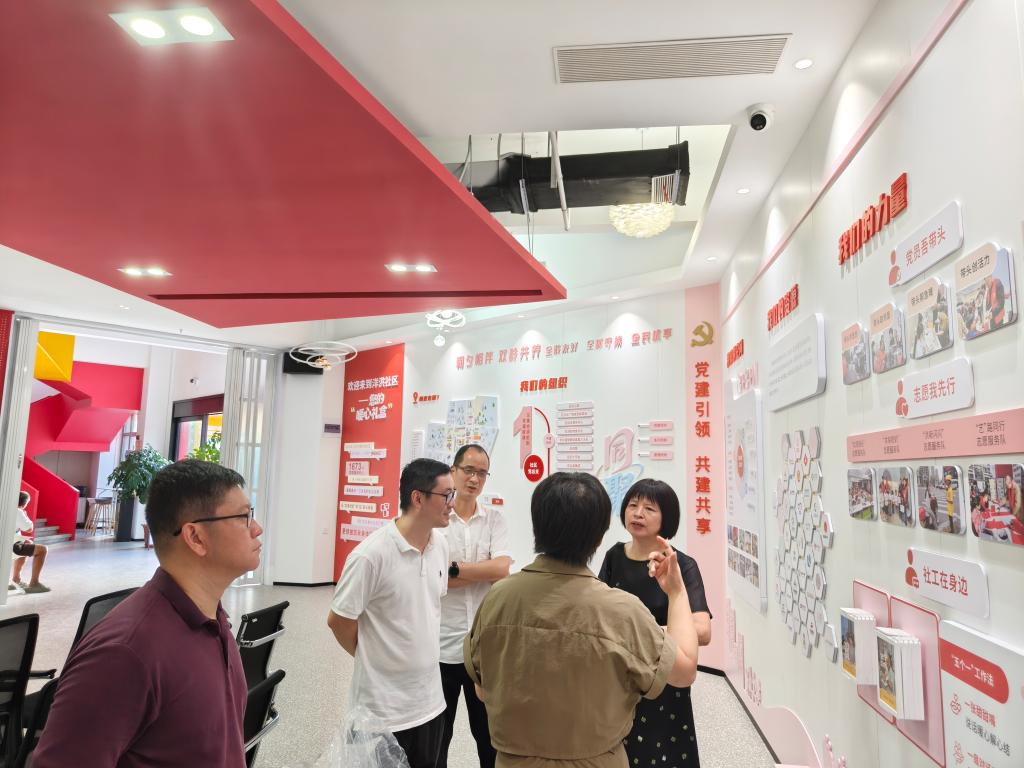 在洋洪社区,张天华教授一行重点了解受到中央电视台报道的“共享奶奶”志愿服务托管服务工作,通过社区、幼儿园、家长、共享奶奶、社工机构等多主体协作,不仅提供阅读陪伴、游戏互动等常规托管服务,还设计由具备相关特长的奶奶主导教学的手工、红色故事、音乐启蒙、传统文化体验等“银龄传承小课堂”,推动“奉献-回报-反哺”的社区爱心循环,构建“老幼共融、邻里互助”的社区文化,形成可复制、可持续的“党建+银龄志愿服务”社区治理模式。