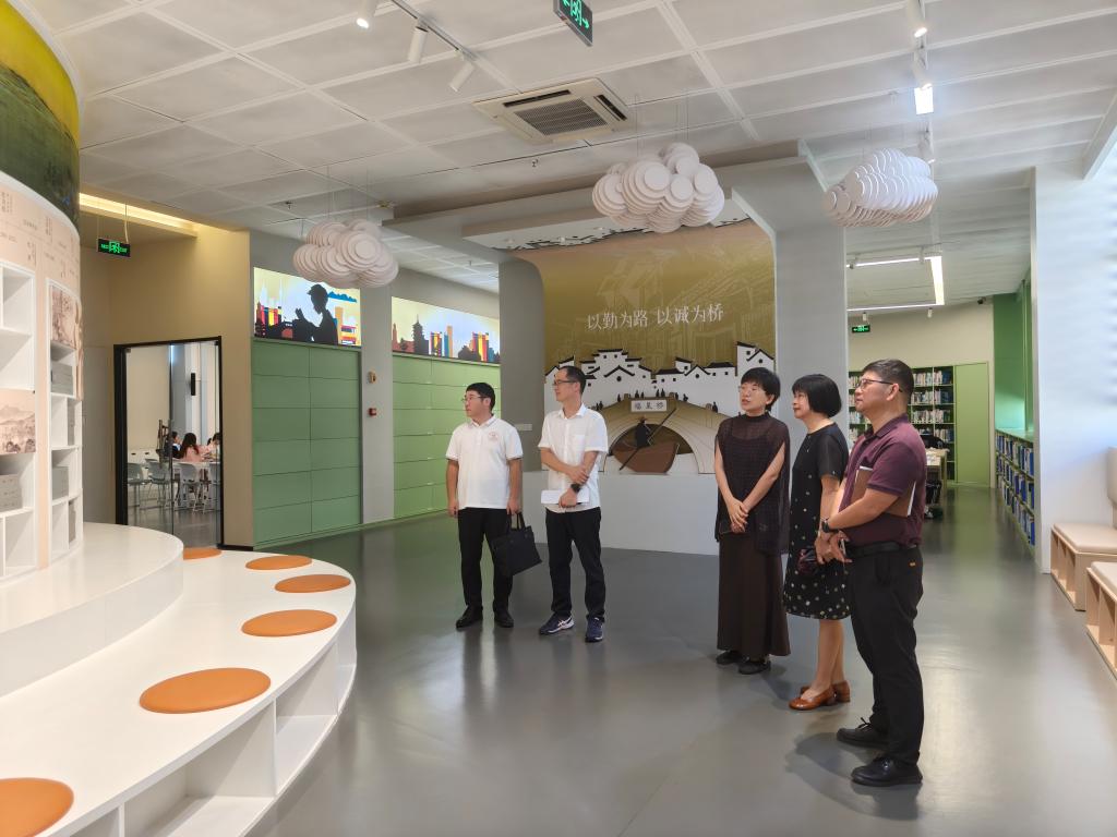 在路桥区图书馆,张天华教授一行人沉浸式调研馆内特色服务与品牌建设成果,重点了解了“读者文化节”“南官人文大讲堂”“艺术之门”等丰富多样的品牌活动,实地考察了女子馆、少儿馆、音乐E书房、读者沙龙间、休闲区等特色功能区,尤其是高度关注了将数字化服务与地域文化深度融合的“电子点读吧”“美妙听书岛”“路桥之声”等数智图书馆场景一体化建设,双方围绕校馆合作展开深入探讨,就加强大学生、研究生、马克思主义学院教授博士和路桥区图书馆的科普宣讲、社会实践等校馆合作达成共识,推动校馆双方在新时代文明实践共建上迈出实质性步伐。