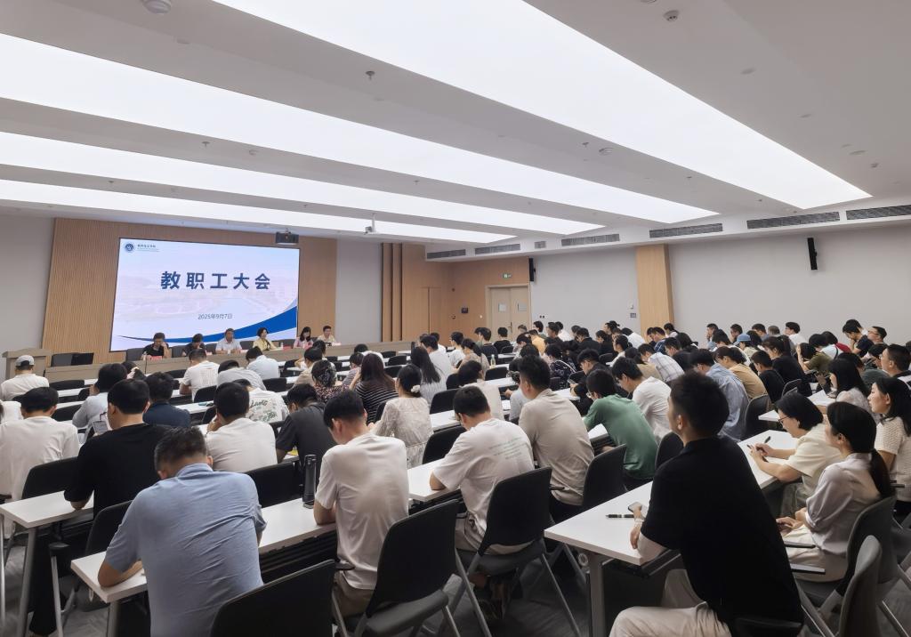 会议伊始,学院全体教职员工对新入职的四位博士表示热烈欢迎。希望他们尽快融入学院,尽快完成角色转变,站稳讲台、潜心教学、专注科研、致力育人。随后,院长黄国波传达了学校中层干部会议精神,重点围绕学校党委书记朱坚的讲话和校长、党委副书记乐传永题为《科学谋划事业发展 统筹推进“升大申博” 加快建设特色鲜明的高水平应用型大学》的专题报告展开。他强调,学校“十五五”时期事业发展的总体目标为学院前进指明了方向,学院将不断深化教育教学改革,加强学科平台与科研团队建设,加速推动标志性成果产出,着力突破教学、科研成果瓶颈;全体教职工要牢牢把握这一发展机遇,凝心聚力、务实笃行,为学院高质量发展注入强劲动力,助力学校实现“升大升博”目标。