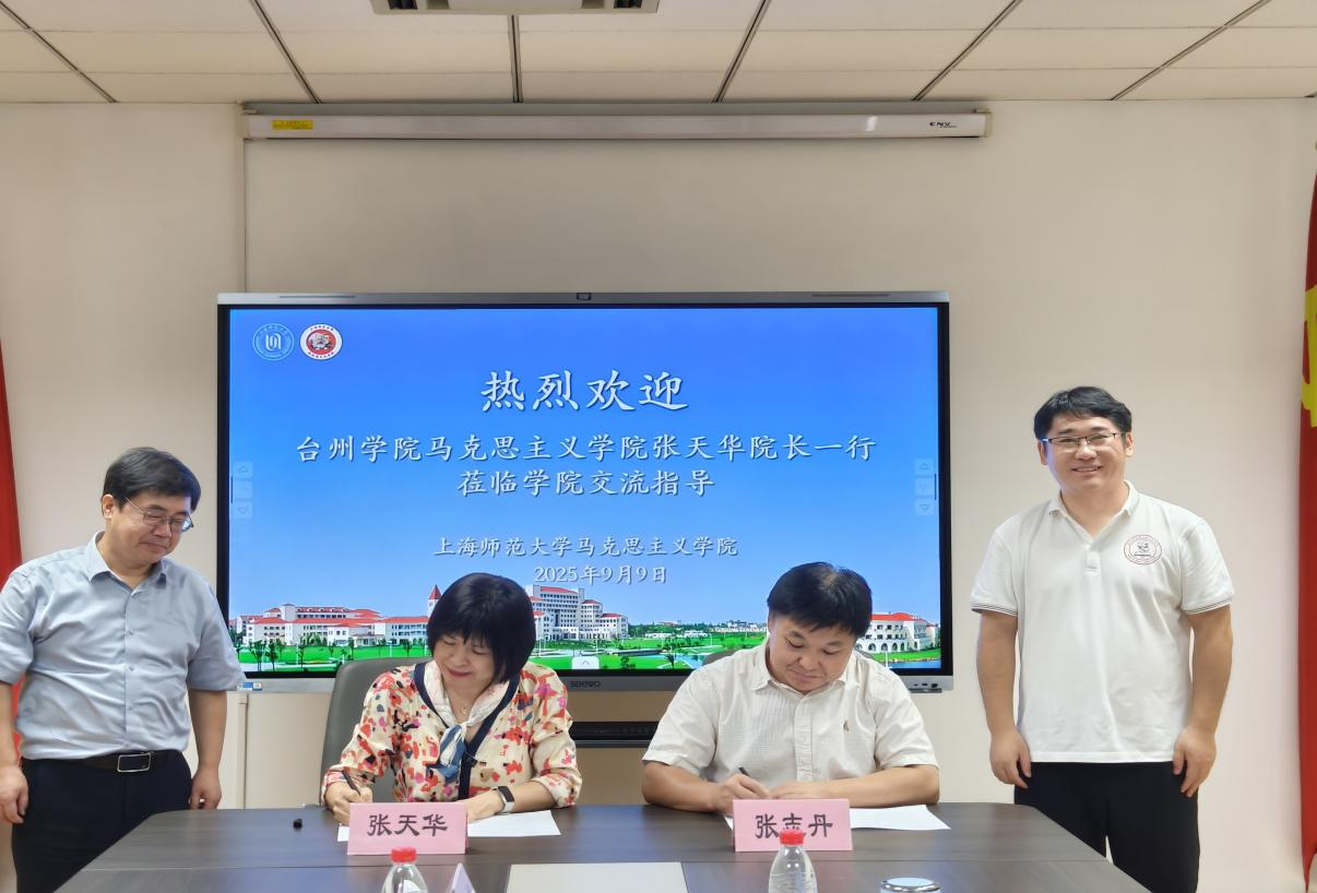在调研过程中,张天华对上海师范大学、华东师范大学马克思主义学院一直以来的大力支持表示感谢,介绍了学校马克思主义学院在学科、专业和思政课建设的情况,并分别与两所高校马克思主义学院签订了共建马克思主义学院协议,邀请两所高校马院领导参加台州学院即将召开的马克思主义理论学科高质量发展学术研讨会暨“真理的味道·和合思政”大中小学思政教育一体化创新实践论坛。