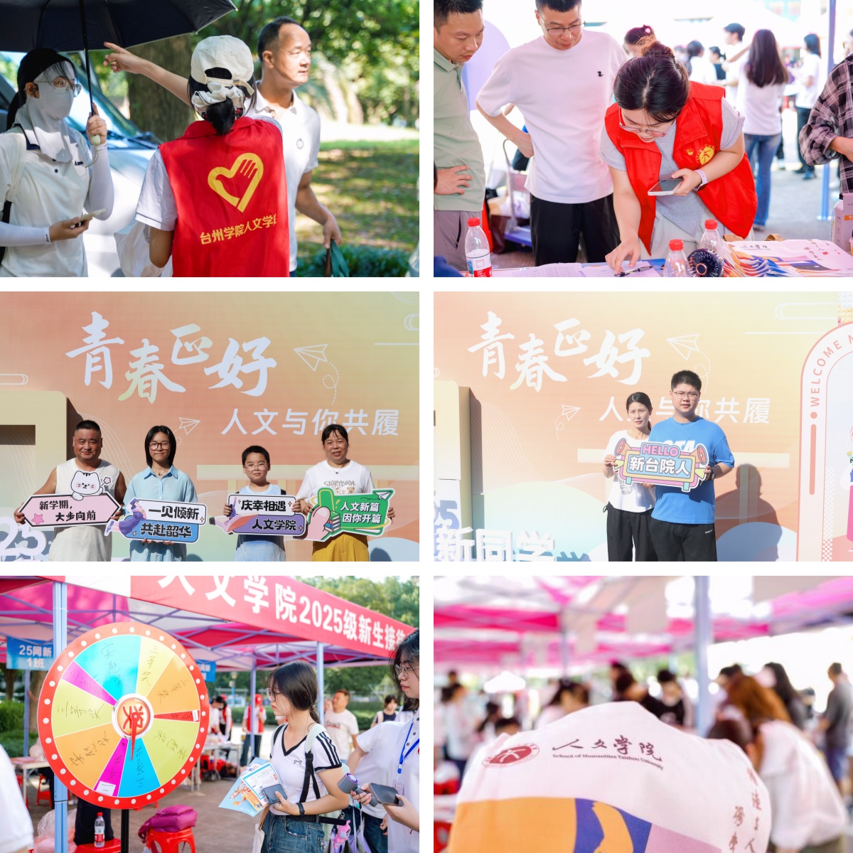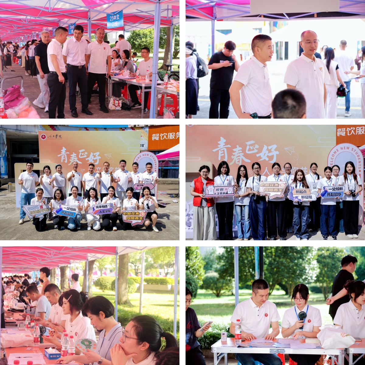 迎新当天,学院领导、新生班主任和辅导员统一身着人文主题文化衫,早早来到迎新点,为初入校园的新生与家长提供细致的现场指引和贴心帮助。各班班助与学生志愿者团队全程陪伴,发放资料袋、学院定制帆布包等入学礼。现场特别设置了“青春正好,人文与你共履”主题留影区与趣味抽奖环节,仪式感与欢笑声交织,暖意融融。