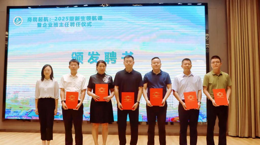 为助力2025级新生开启大学新篇章,深化校企协同育人机制,9月17日晚,商学院在大学生活动中心隆重举办2025级新生领航课暨企业班主任聘任仪式。本次活动汇聚业界精英与学界力量,共同为新生的成长成才注入强劲动力。商学院党委书记马斌、副书记陈斌岚、企业班主任、系主任、班主任、辅导员及2025级新生参加活动。