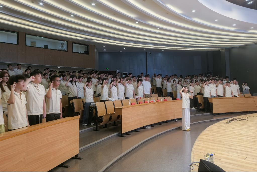 “不迟到,不早退;带席卡,亮身份;拒早餐,净教室;收手机,勤思辨;尊师长,敬课堂;知行合一,笃学力行;争做“课堂革命”践行者、优良学风建设者、不负韶华逐梦人……”活动中心内回荡着新生的庄严宣誓,这是“课堂革命我参与”的集体承诺、自律公约和动员号令。学院学工办同步解读考勤、席卡管理及“学习型班级”评比制度等,标志着2025级新生学风建设正式启动。