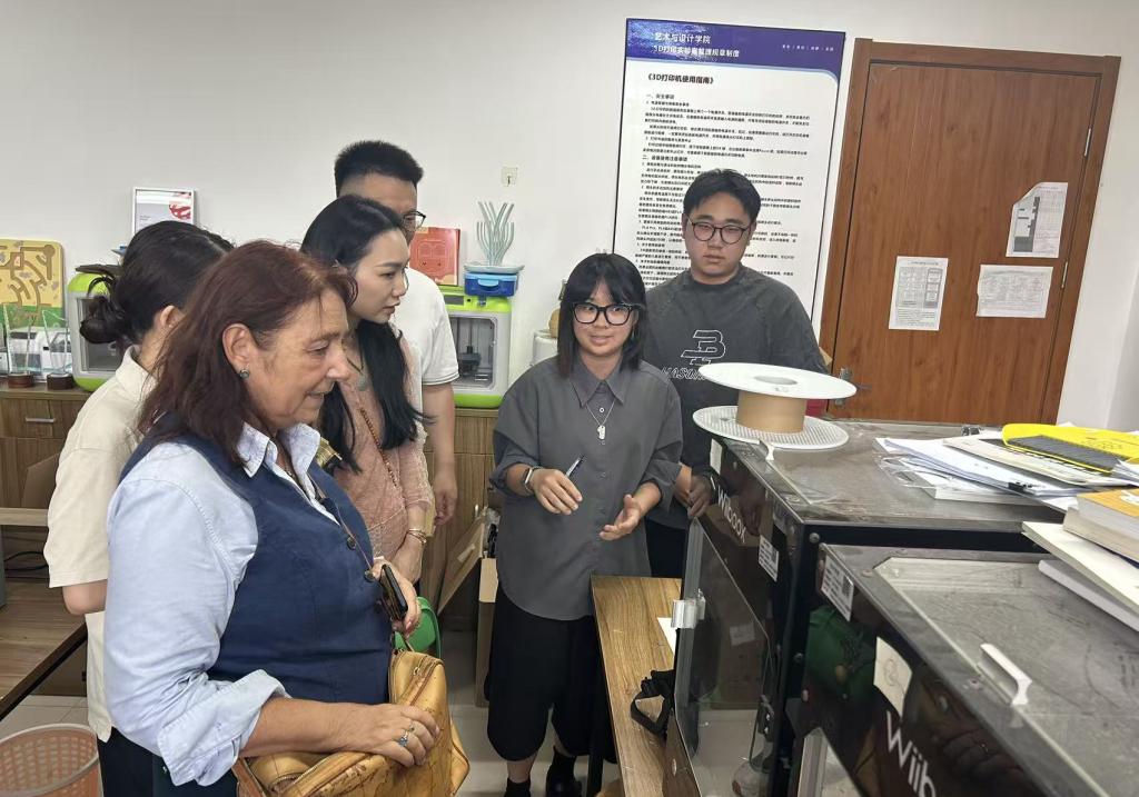 访问期间,代表团一行参观了我校艺术与设计学院,实地观摩了毕业学生成果展示,并走访了书法国画油画等教室、实验室与项蔚名家工作室,充分肯定了我校学生在美术创意设计、创新创业领域展现出的专业素养和实践能力。