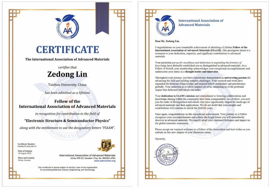 近期,材料科学与工程学院林则东博士当选国际先进材料学会会士(Fellow of the International Association of Advanced Materials, FIAAM)。