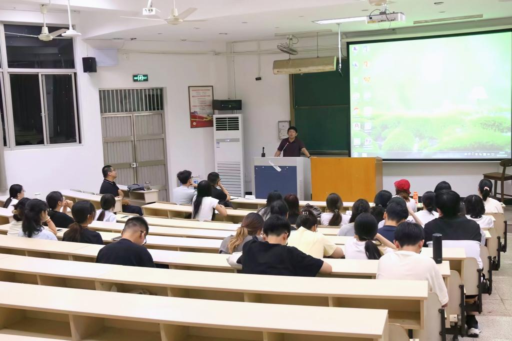 徐培林首先结合教育部最新发布的研究生招生政策,并就目前思政专业学生就业形势深入分析了中小学教师队伍建设与研究生学历发展的关联性。他明确指出考研是提升个人核心竞争力、拓宽就业渠道的有效途径,鼓励同学们顺应时代要求,将升学深造纳入职业生涯规划的重要环节。面对研究生扩招与考编率变化的现实情况,他进一步鼓励同学们化压力为动力,尽早规划、抢占备考先机。同时,徐培林详细介绍了学院为考研学子定制的全方位支持政策,并从目标设定、复习策略、心态调整等关键环节提出具体建议。最后,他勉励大家充分发挥思政专业学生的优势,以敢闯敢干的拼搏精神迎接挑战。