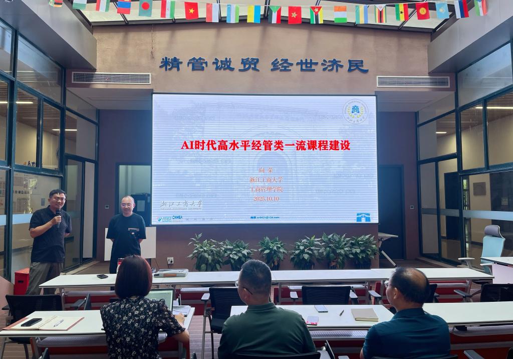10月10日下午,浙江工商大学工商管理学院向荣教授应邀赴台州学院商学院,以《AI时代高水平经管类一流课程建设》为主题开展讲座。活动由商学院副院长陈国栋主持,各系骨干教师参与。