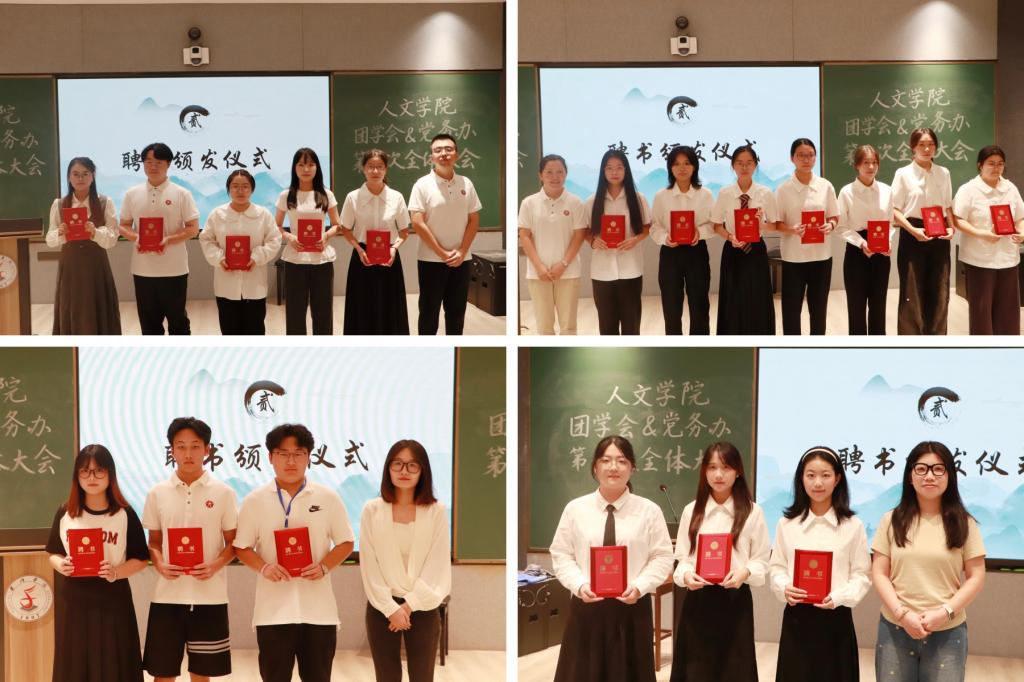 在老师致辞中,徐樵楚表达了对新一届学生干部的殷切期望,勉励大家履职尽责、积极作为。随后,各位老师分别为主席团、团学会及党务办等各部门代表颁发聘书。