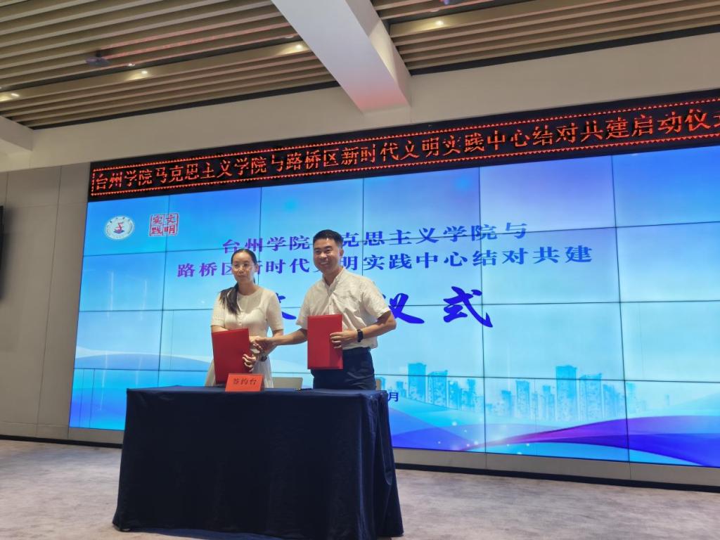 王胜与路桥区精神文明建设指导中心主任许美颖共同签署了《共建合作协议书》。张天华与徐玮玮共同为“共建基地”揭牌。仪式最后,王在亮作理论宣讲展示。